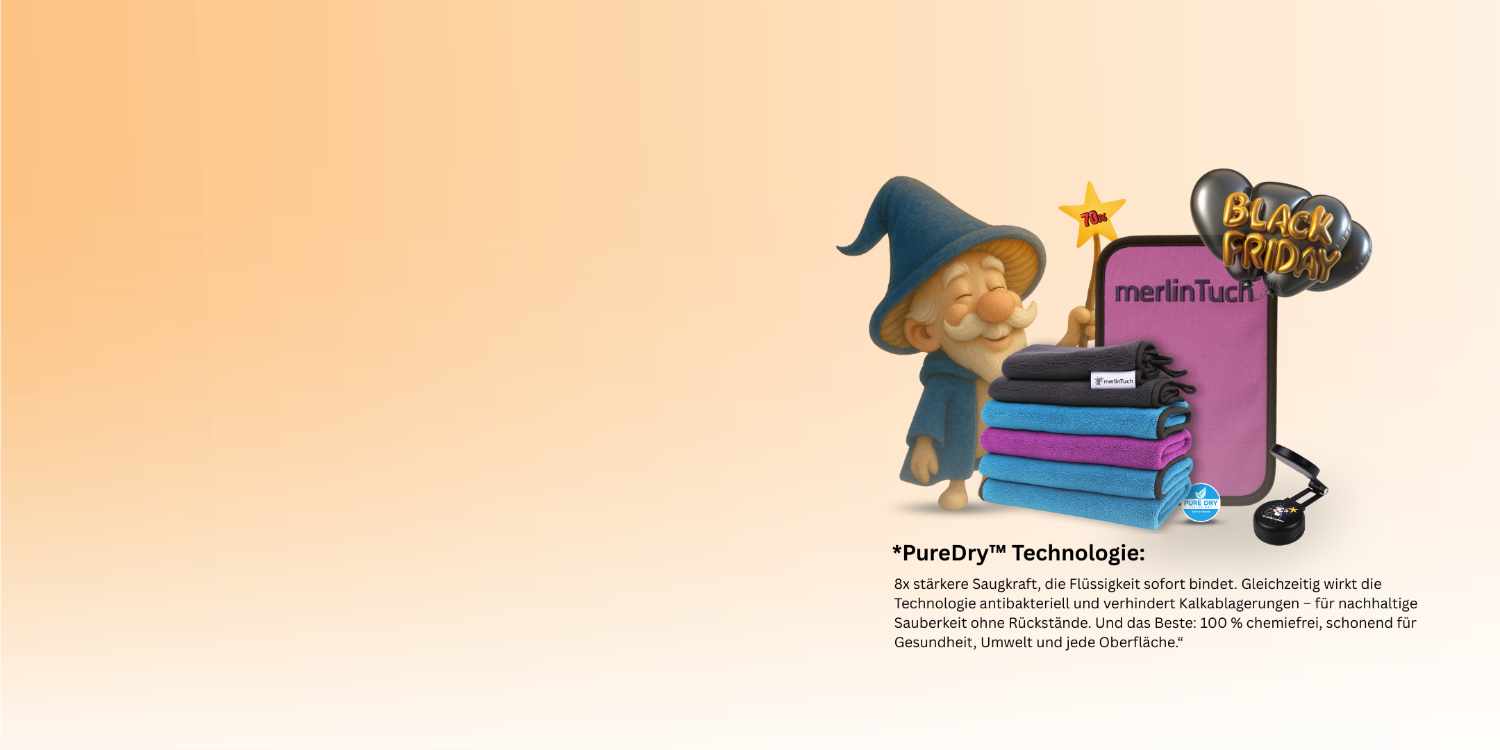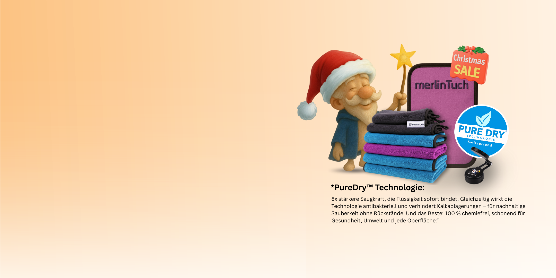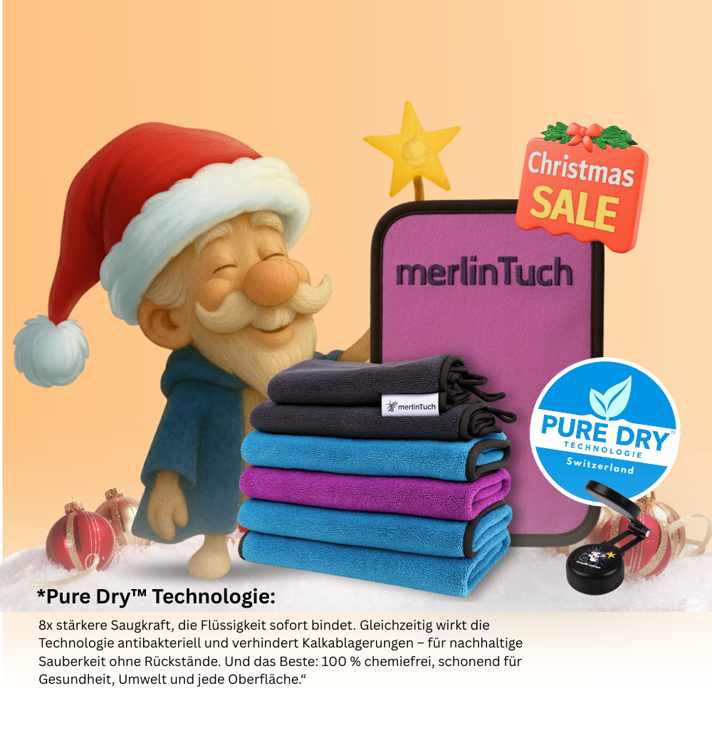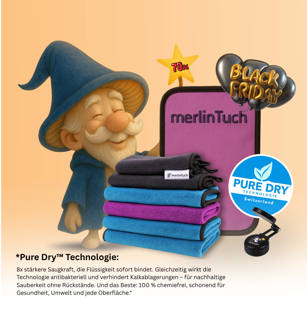 Und das Beste: PureDry™ funktioniert vollständig ohne Chemie. Damit ist sie nicht nur schonend für alle Oberflächen, sondern auch für deine Gesundheit, deine Familie, Haustiere und die Umwelt. So verbindet PureDry höchste Leistungsfähigkeit mit echter Nachhaltigkeit.