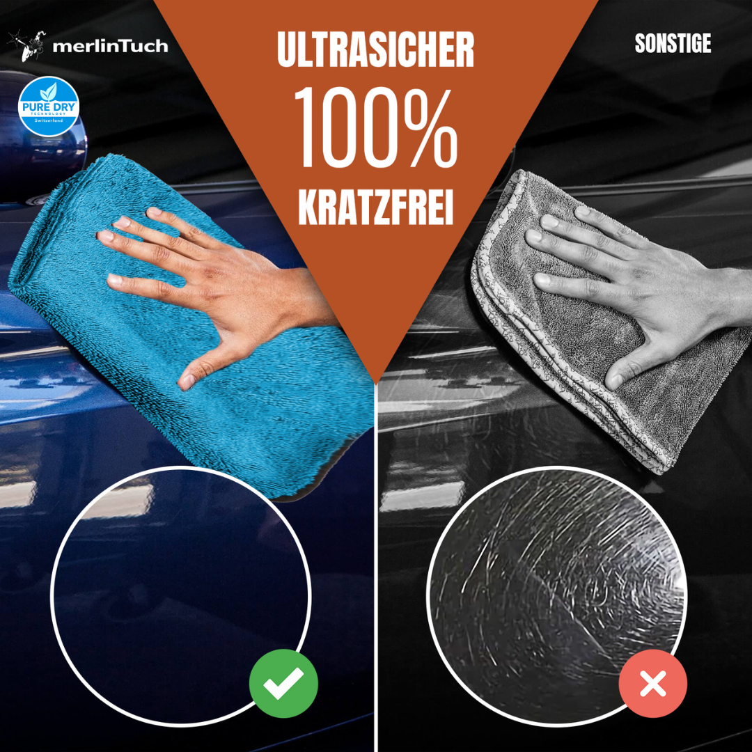 Herkömmliche Tücher verursachen Mikrokratzer, ohne dass du es merkst. Das merlinTuch schützt deinen Lack – sanft, fusselfrei und maximal saugfähig.
